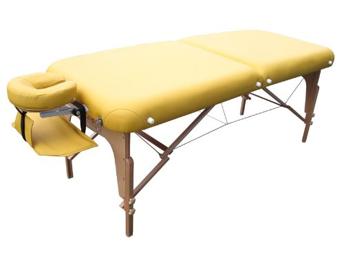 Klappbare Massageliege Zen Round Corner (gelb) mit abgerundeten Ecken und viel Zubehör Feature