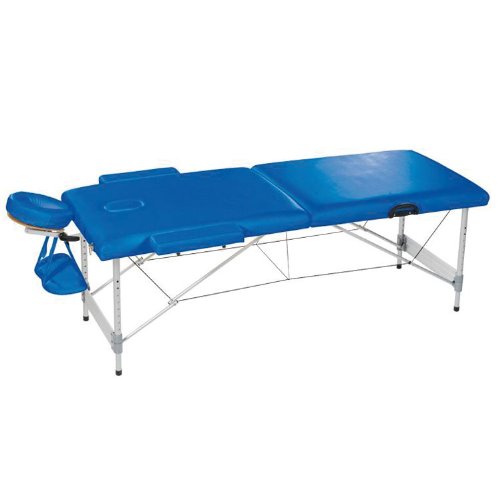 - Aufstellmaße:ca. 193 x 70 x 59-85 cm - Gewicht: ca. 14kg - max. Arbeitsbelastung: 225 kg - 2-teilige Liegefläche - Gestell aus Aluminium - Verspannung mit Querstreben und ummantelten Stahlseilen - Höhenverstellung an den Beinen - Aufstellbare Rückenlehne - Zwei Armstützen seitlich - Verstellbare Handauflage - Gesichtsausschnitt mit Verschlusseinsatz - Flexible abnehmbare Multifunktionskopfstütze - Material: Bezug aus PVC, öl- und wasserbeständig - Bequeme Schaumstoff-Polsterung, Polsterung ca. 4 cm - Gestell aus Aluminium tolle Massageliege in blau mit vielen Accessoires