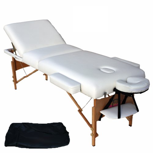 TecTake Massageliege Premium mit 10cm reiner Polsterung WEIß + Tasche & Alukopfstütze Feature