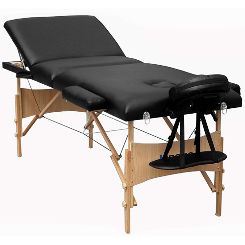 Öl- und wasserresistenter Vinylbezug ca. 7,5 cm starke Polsterung verstellbare ergonomische Multifunktionskopfstütze extrem stabile Massageliege (Gestell aus Buchenholz) inklusive praktische Tragetasche