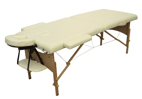 Mobile Massageliege "Sparfuchs", stabiler Holzrahmen bis 250 kg, milchweiß, 186 x 70 cm, 4 cm Polsterung, inkl. Tragetasche Feature